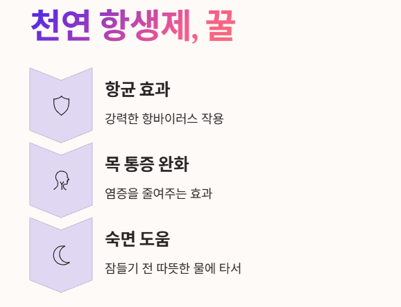 - 꿀은 목의 통증을 줄여주고 염증을 완화하는 데 도움을 줘요. ✨