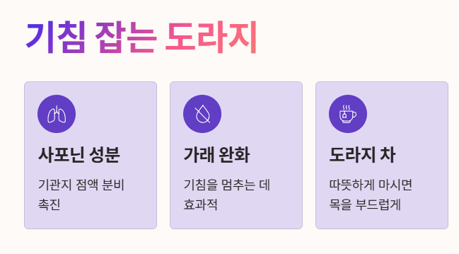 - 도라지에 풍부한 사포닌 성분이 기관지의 점액 분비를 촉진해 가래를 삭이고 기침을 완화하는 데 도움을 줍니다. 👍