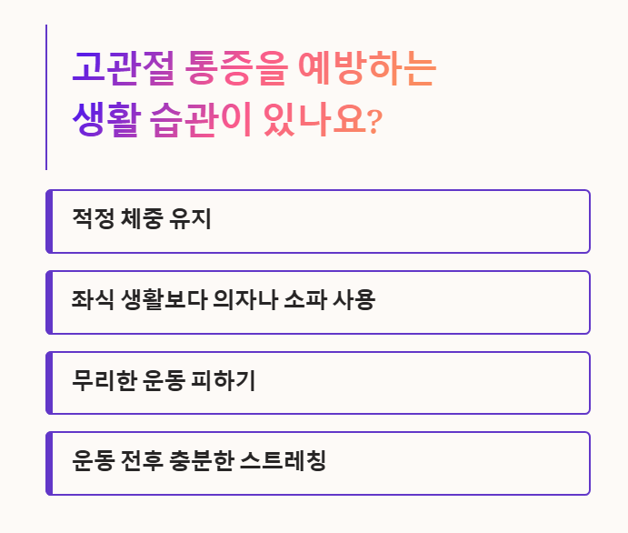 Q5: 고관절 통증을 예방하는 생활 습관이 있나요?