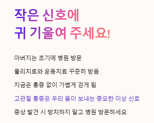 처음엔 나이가 들어서 그러려니 했는데, 앉고 일어설 때마다 "악!" 소리를 내시는 걸 보고 덜컥 겁이 났어요. 😱