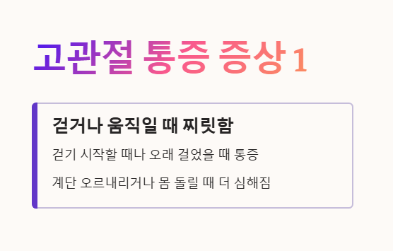 - 계단을 오르내리거나, 몸을 옆으로 돌릴 때 통증이 더 심해질 수 있어요. 🚶♀️