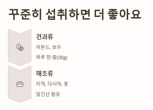 - 하지만 칼로리가 높으니 하루 한 줌(약 30g) 정도만 섭취하는 게 좋아요. 🥜