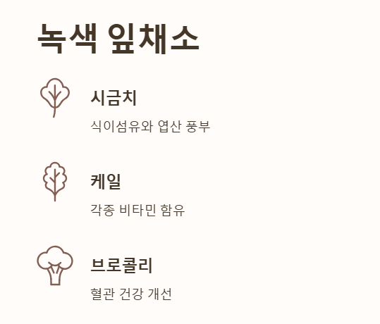 - 식이섬유와 엽산, 각종 비타민이 풍부해 혈관 건강에 도움을 줍니다. 🥬