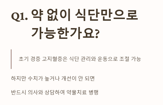 Q1: 고지혈증은 약 없이 식단 관리만으로도 괜찮나요?