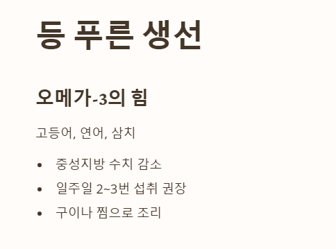 1) 등 푸른 생선 (고등어, 연어, 삼치)