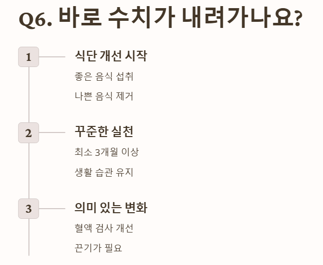 Q6: 고지혈증에 좋은 음식만 먹으면 바로 수치가 내려가나요?