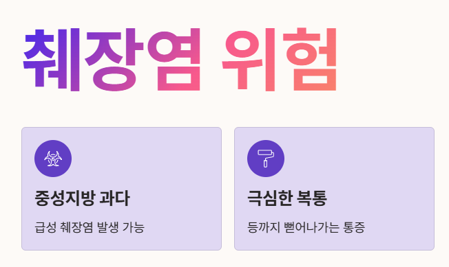 - 특히 중성지방 수치가 매우 높을 경우 급성 췌장염이 발생할 수 있는데요.