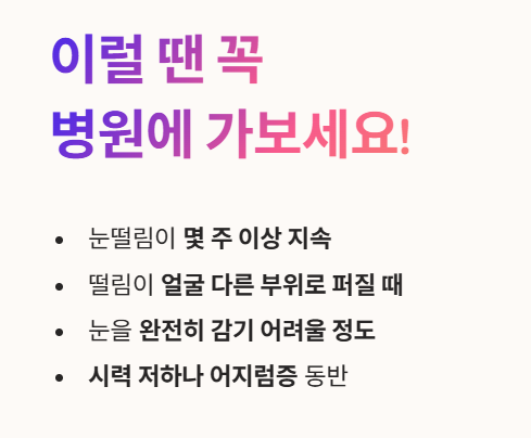 - 떨림의 범위가 얼굴의 다른 부위로 퍼질 때 (예: 입꼬리)