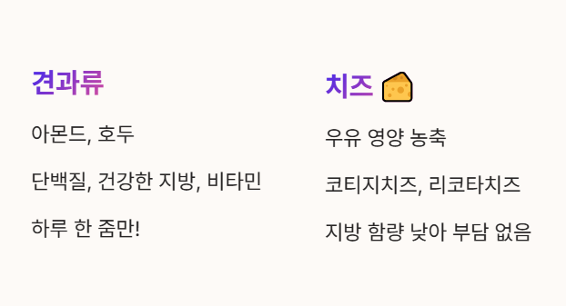 - 특히 코티지치즈나 리코타치즈는 지방 함량이 낮아 부담 없이 즐길 수 있습니다.