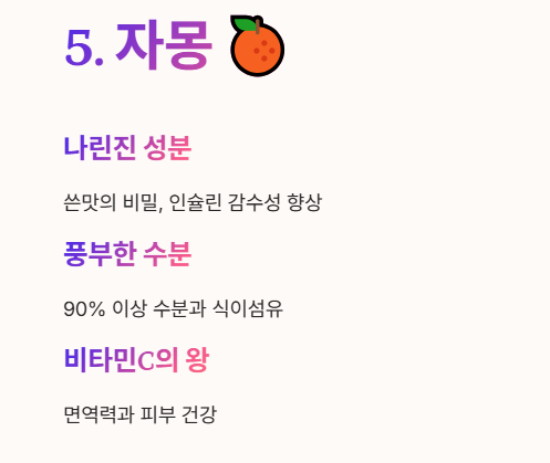 - 비타민C와 항산화 물질: 면역력을 높이고 혈관 건강을 지키는 데 도움을 줍니다.