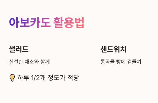 아보카도는 과일이지만 단맛이 거의 없고 지방 함량이 높은 특별한 과일이에요. 🥑