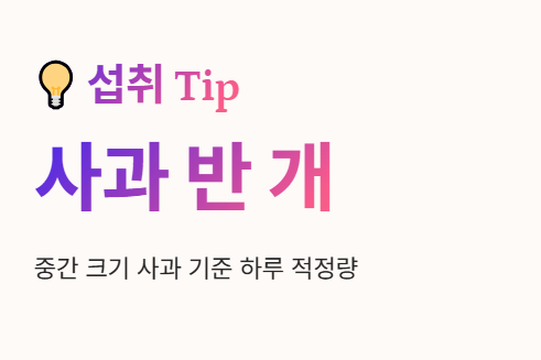 💡 섭취 Tip: 중간 크기 사과 기준으로 하루에 반 개 정도가 적당합니다.