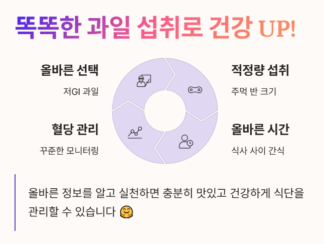 오늘 알려드린 내용 꼭 기억하셔서, 똑똑한 과일 섭취로 혈당 관리와 건강 두 마리 토끼를 모두 잡으시길 바랄게요! 🤗