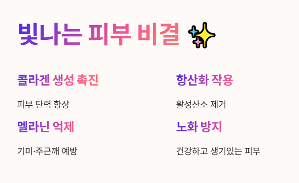 비타민C는 콜라겐 생성을 촉진하여 피부 탄력을 높이고,
