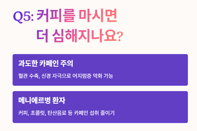 Q5: 커피를 마시면 어지럼증이 더 심해지나요?