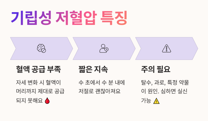 - 자세가 바뀔 때 혈액이 머리까지 제대로 공급되지 못해 발생해요. 🩸