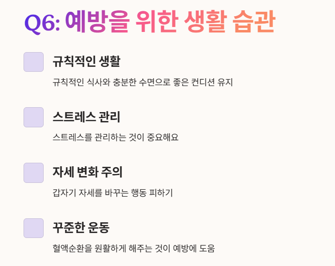 Q6: 어지럼증 예방을 위한 생활 습관이 궁금해요.