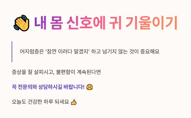 친구의 어지럼증 경험 덕분에 저도 제 몸이 보내는 신호를 무시하면 안 되겠다고 다짐했어요. 👍
