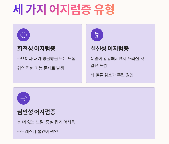 어지럼증은 크게 세 가지 유형으로 나눌 수 있답니다.