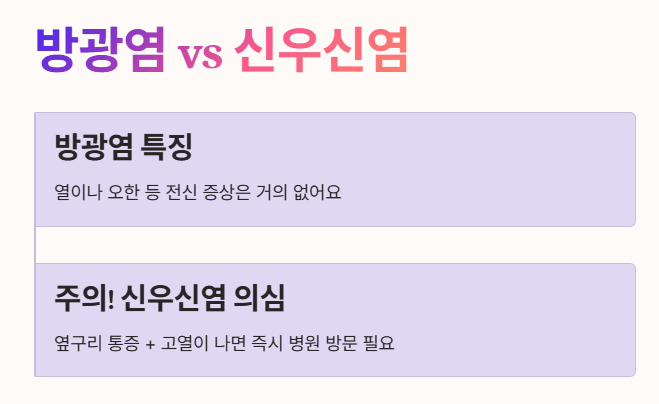 - 증상이 있다면 병원을 방문해 정확한 진단을 받는 것이 가장 안전해요.