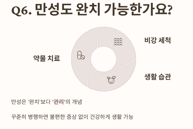 - 만성은 '완치'보다는 '관리'의 개념이 강해요.