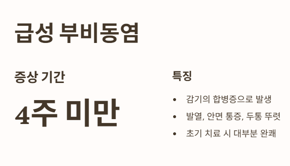 - 주로 감기의 합병증으로 발생하며, 증상이 4주 미만으로 지속돼요.