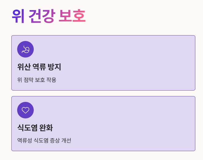 - 위산 역류를 막고 위 점막을 보호하는 데 도움을 주어, 역류성 식도염 증상 완화에도 긍정적인 역할을 할 수 있습니다.