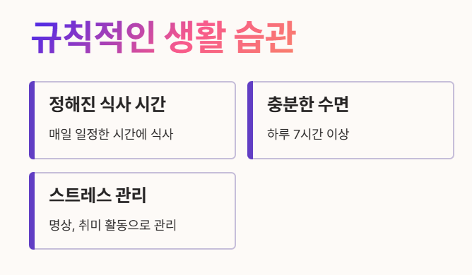 - 매일 정해진 시간에 식사하고, 잠자리에 드는 습관을 들여보세요.