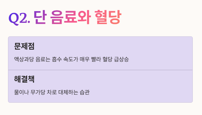 Q2: 단 음료를 마셨더니 혈당이 너무 높게 나와요. 괜찮을까요?