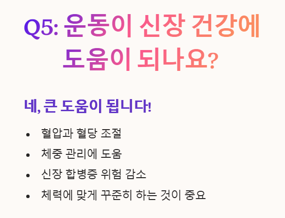 Q5: 운동이 신장 건강에 도움이 되나요?