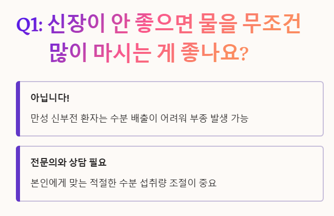 Q1: 신장이 안 좋으면 물을 무조건 많이 마시는 게 좋나요?