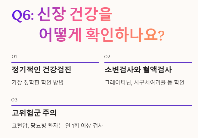 Q6: 초기에는 증상이 없다는데, 신장 건강을 어떻게 확인하나요?