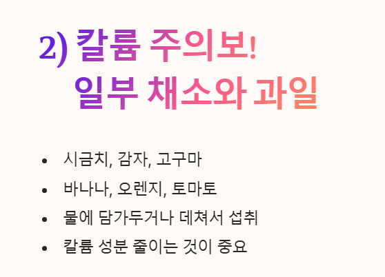 2) 칼륨 주의보! 🚨 일부 채소와 과일