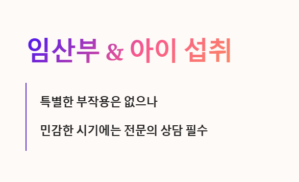 - 특별히 알려진 부작용은 없지만, 임산부나 수유부, 어린아이, 특정 질환이 있는 경우 등 민감한 시기에는 섭취 전 반드시 전문의와 상담하는 것이 좋습니다.