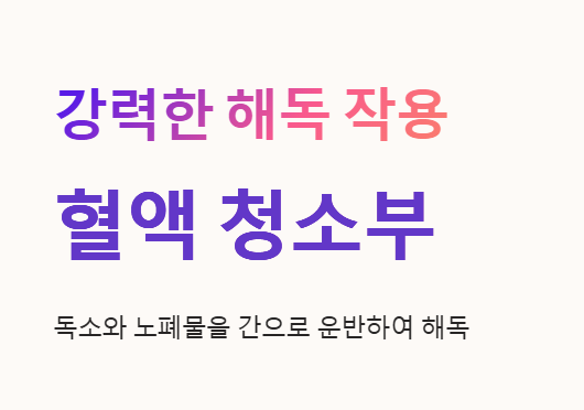 - 우리 몸에 쌓인 독소나 노폐물을 간으로 운반하여 해독하는 데에도 중요한 역할을 해요.