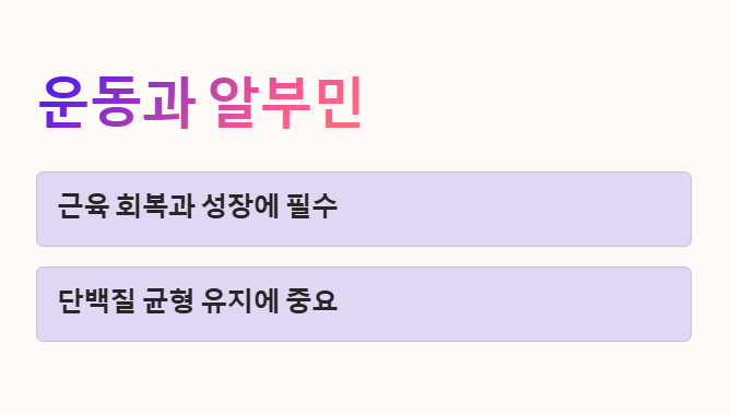 - 알부민은 체내 단백질 균형을 유지하는 데 중요한 역할을 하므로, 꾸준히 운동한다면 단백질 섭취에 더 신경 쓰는 것이 좋습니다. 💪