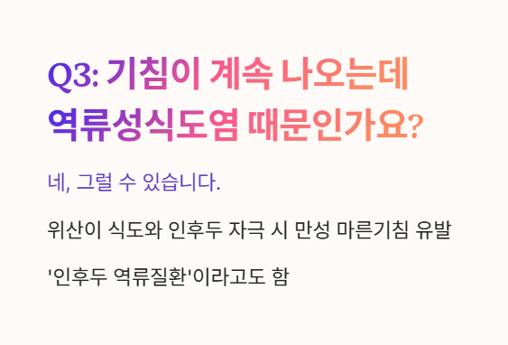 Q3: 기침이 계속 나오는데 역류성식도염 때문일 수 있나요?