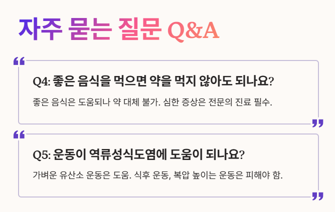 - A: 좋은 음식은 증상 완화와 재발 방지에 도움을 주지만, 약을 대체할 수는 없습니다.