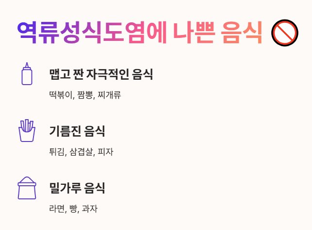 - 맵고 짠 자극적인 음식: 떡볶이, 짬뽕, 찌개류