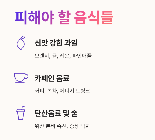 아래 음식들은 증상을 악화시킬 수 있으니 꼭 주의해 주세요! 😯