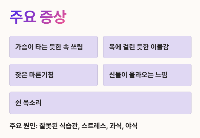이 과정이 반복되면 식도에 염증이 생기고, 다양한 불편한 증상들을 유발하게 되죠. 😥