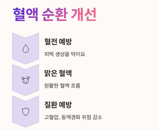 - 혈전(피떡)이 생기는 것을 막아 혈액이 맑고 원활하게 흐르도록 도와줘요.
