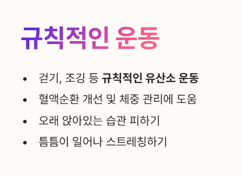 - 걷기, 조깅 등 규칙적인 유산소 운동은 혈액순환을 개선하고 체중 관리에 도움을 줘 전립선 건강에 긍정적인 영향을 줘요. 🏃♂️