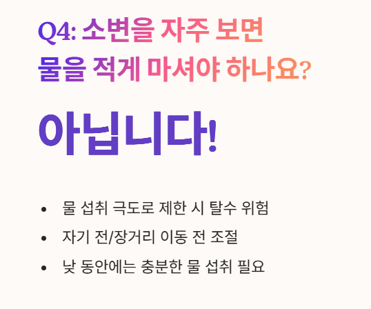Q4: 소변을 자주 보면 물을 적게 마셔야 하나요?