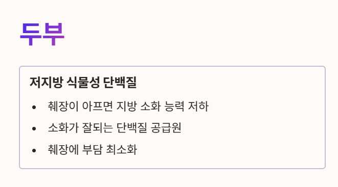 - 두부는 소화가 잘되고 췌장에 부담을 주지 않는 훌륭한 단백질 공급원이에요. 🍽️