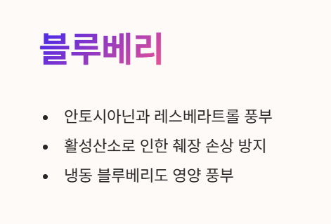 - 대표적인 항산화 식품인 블루베리는 안토시아닌과 레스베라트롤이 풍부해서 활성산소로 인한 췌장의 손상을 막아줘요. 🫐
