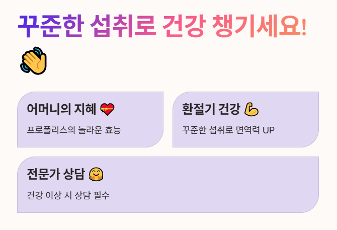 여러분도 오늘 알려드린 정보를 바탕으로 프로폴리스와 함께 건강한 하루하루를 보내시길 바라요. ✨