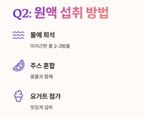 Q2: 프로폴리스 원액은 어떻게 먹는 게 가장 좋나요?