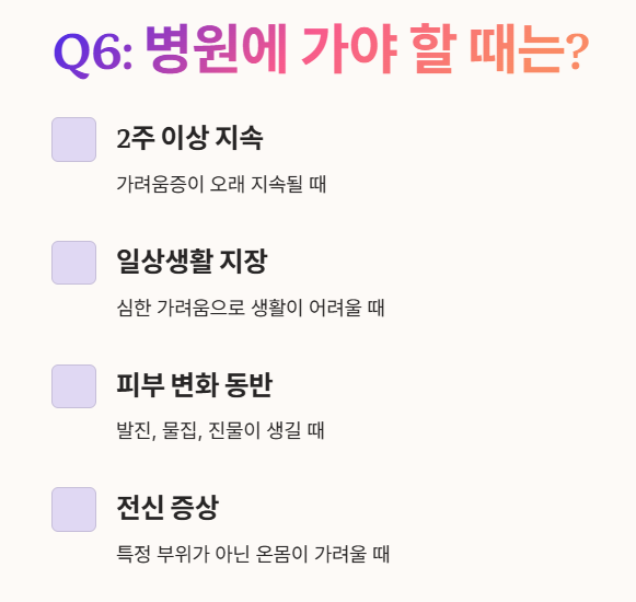 Q6: 가려움증으로 병원에 가야 할 때는 언제인가요?
