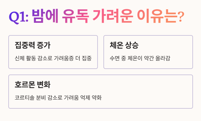 Q1: 밤에 유독 더 가려운 이유는 무엇인가요?